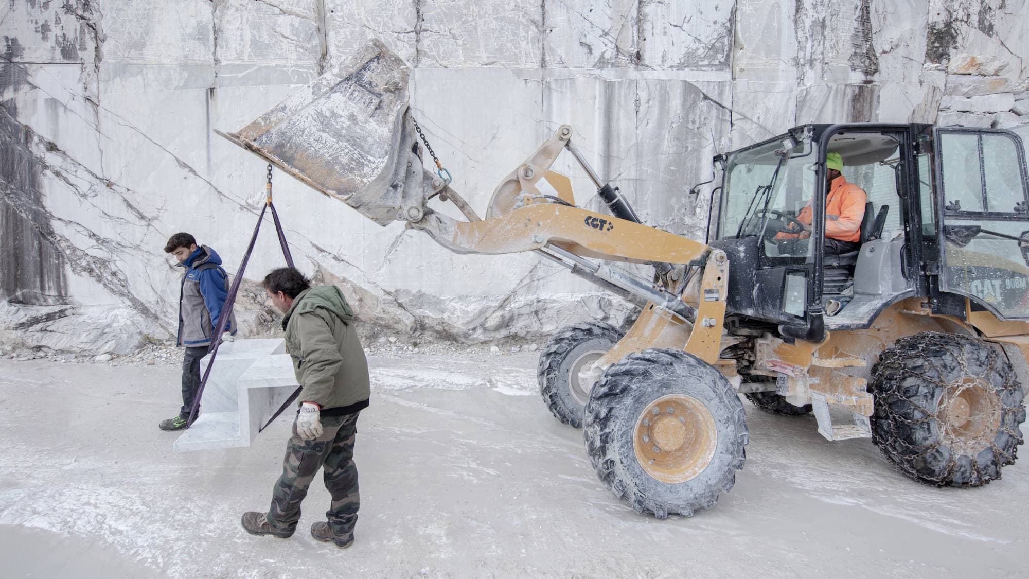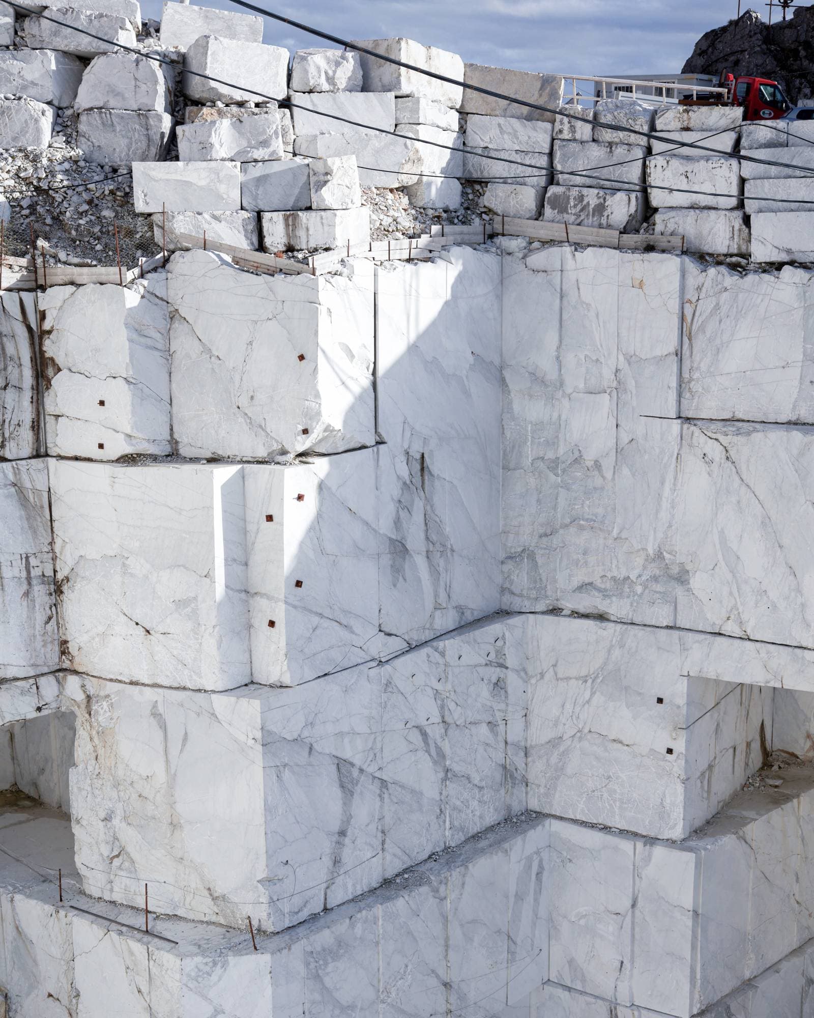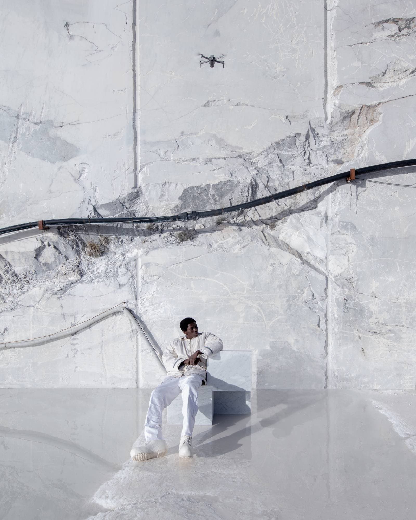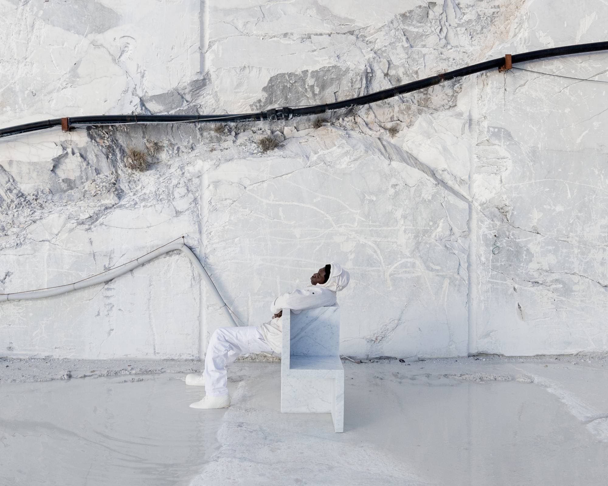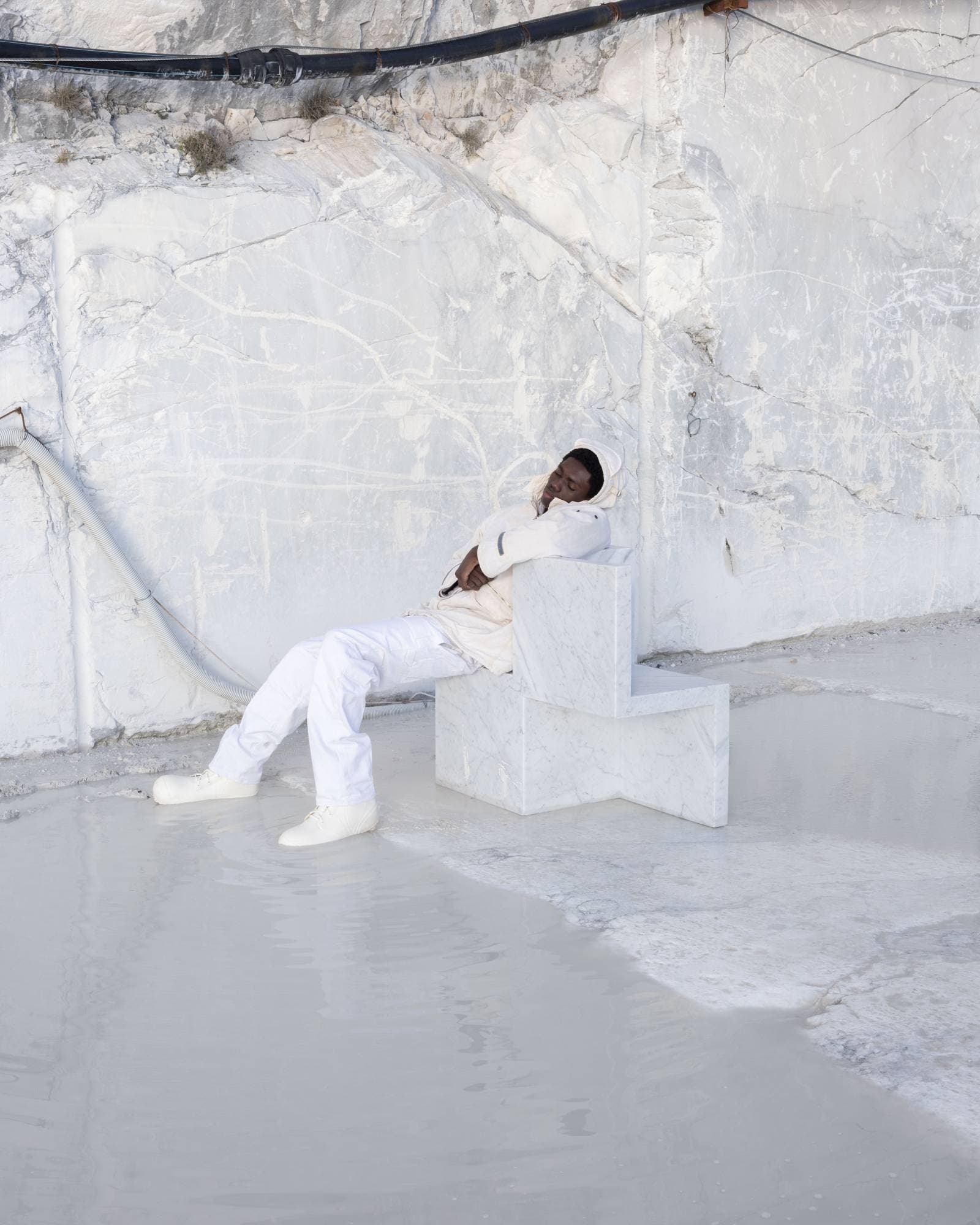 Shot through her signature editorial lens featuring model Ottawa Kwami, Pesonen stages the works in dialogue with one another and their origin; the marble quarry at the top of the Apuan Alps, northwest Italy.