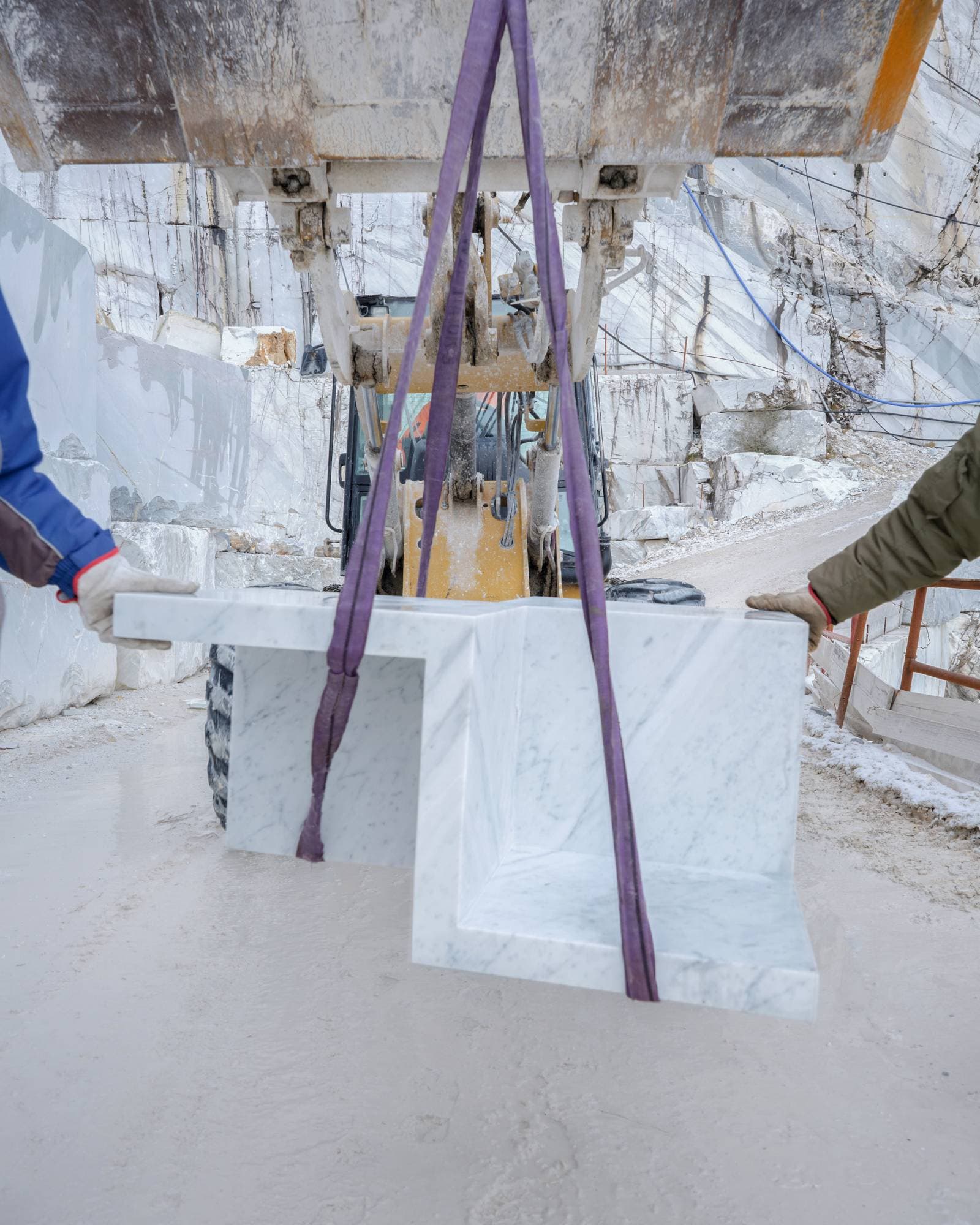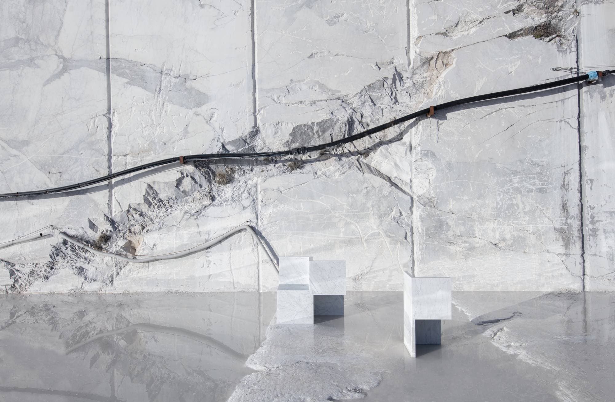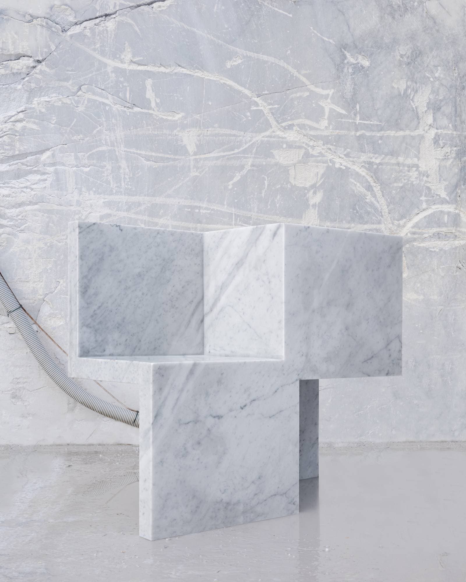 "For my first works in marble the starting point was to create sculptures which not only come with a function for the everyday but go beyond that and propose a non-material quality — the works reflect on the challenges our global community faces — the effects of intensification of divisive politics, misinformation media, growing separation — and propose sculpture as a vehicle and site for introspection and discourse as counteragent."
